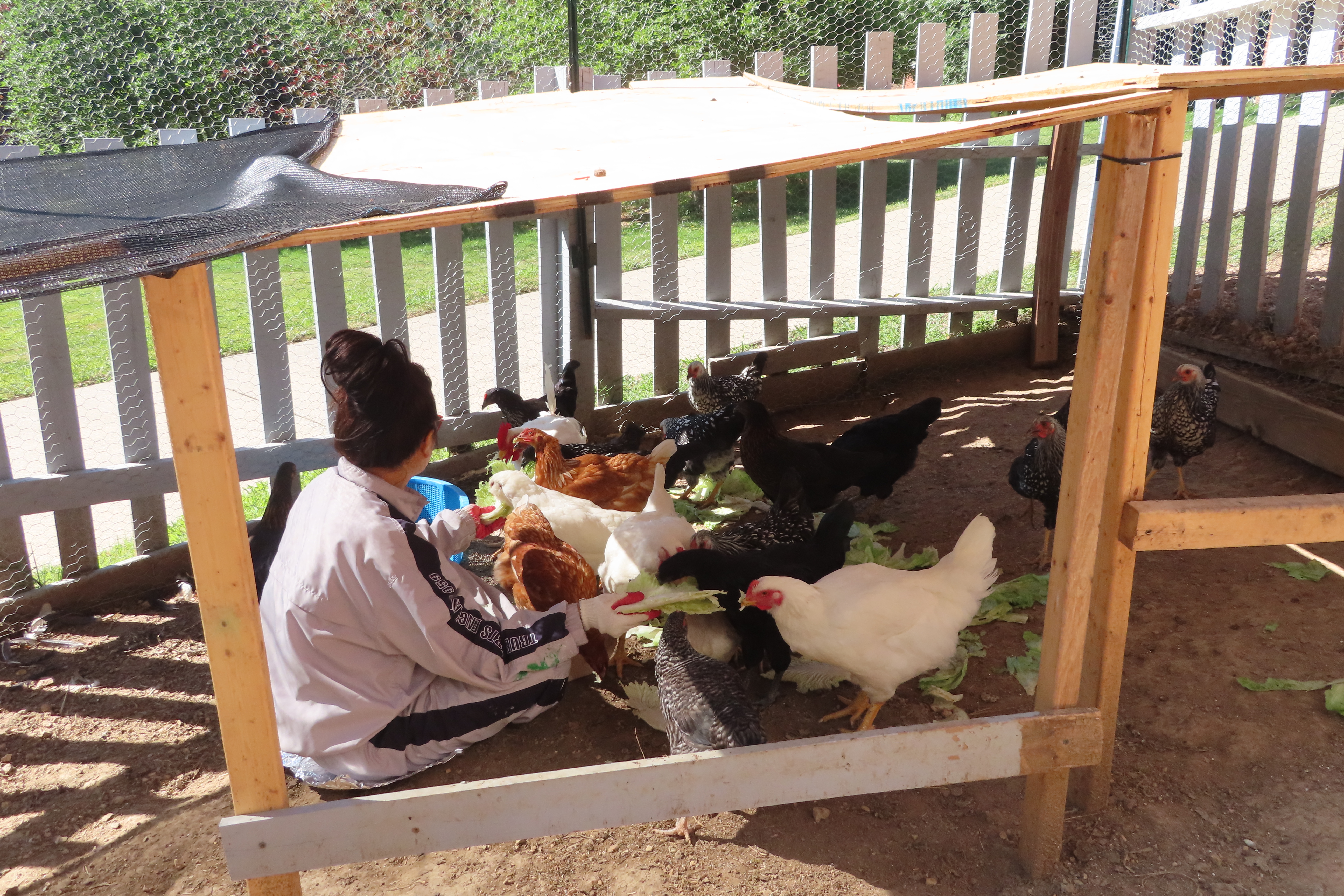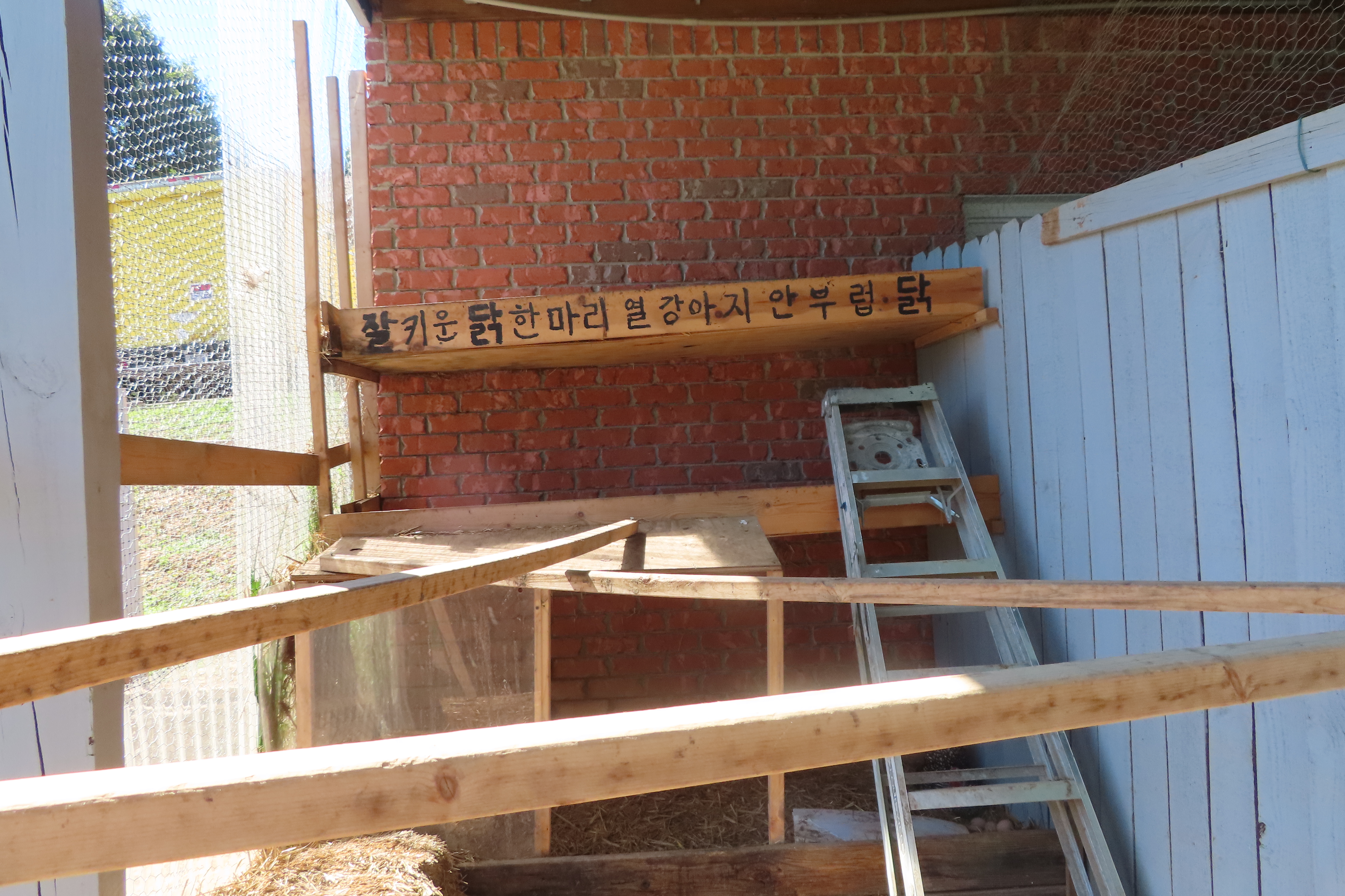 거실에서 한참키운 병아리를 닭장에 풀었습니다