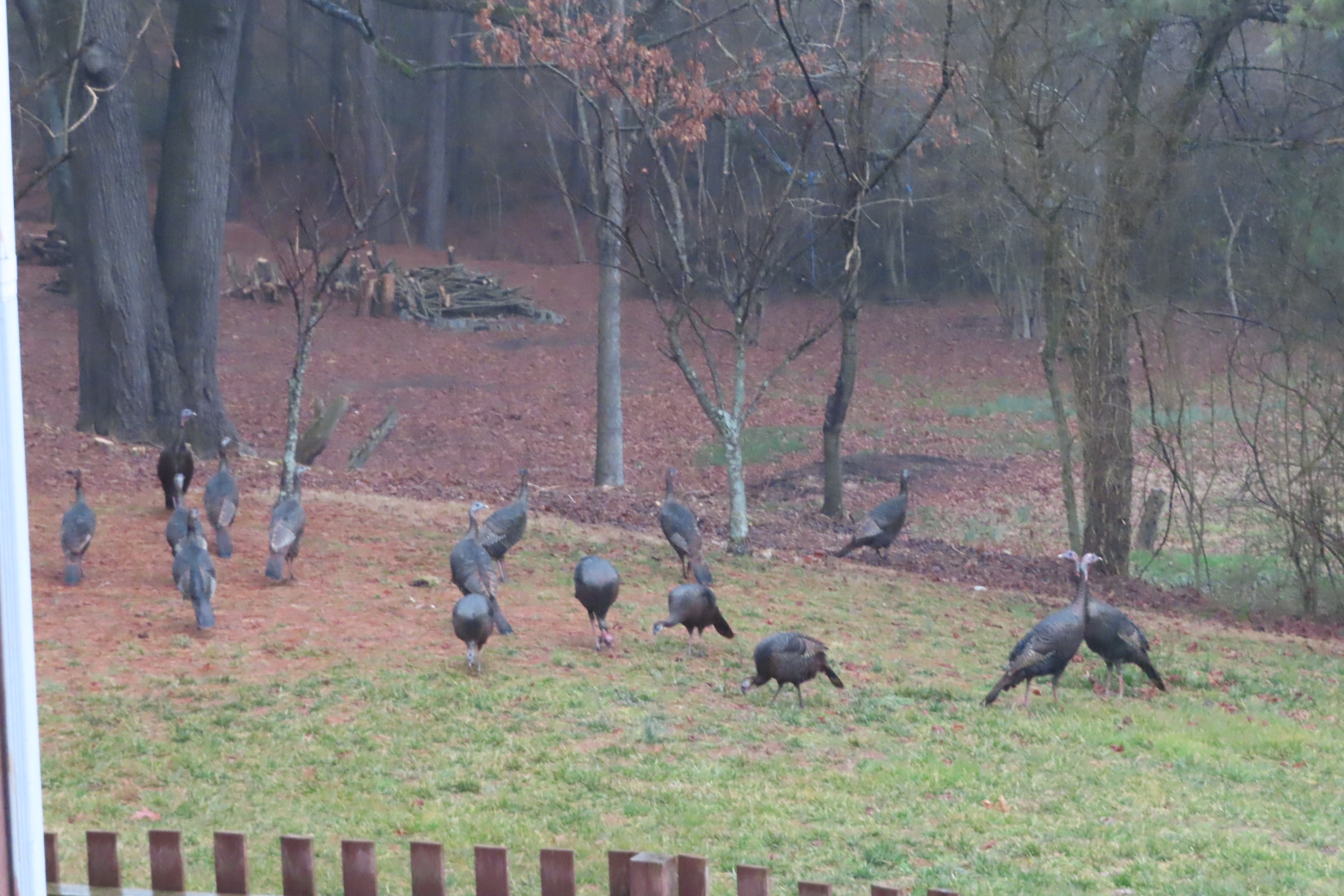 뒷뜰에 시도때도 없이 나타나는 저넘의 칠면조들을 보면서