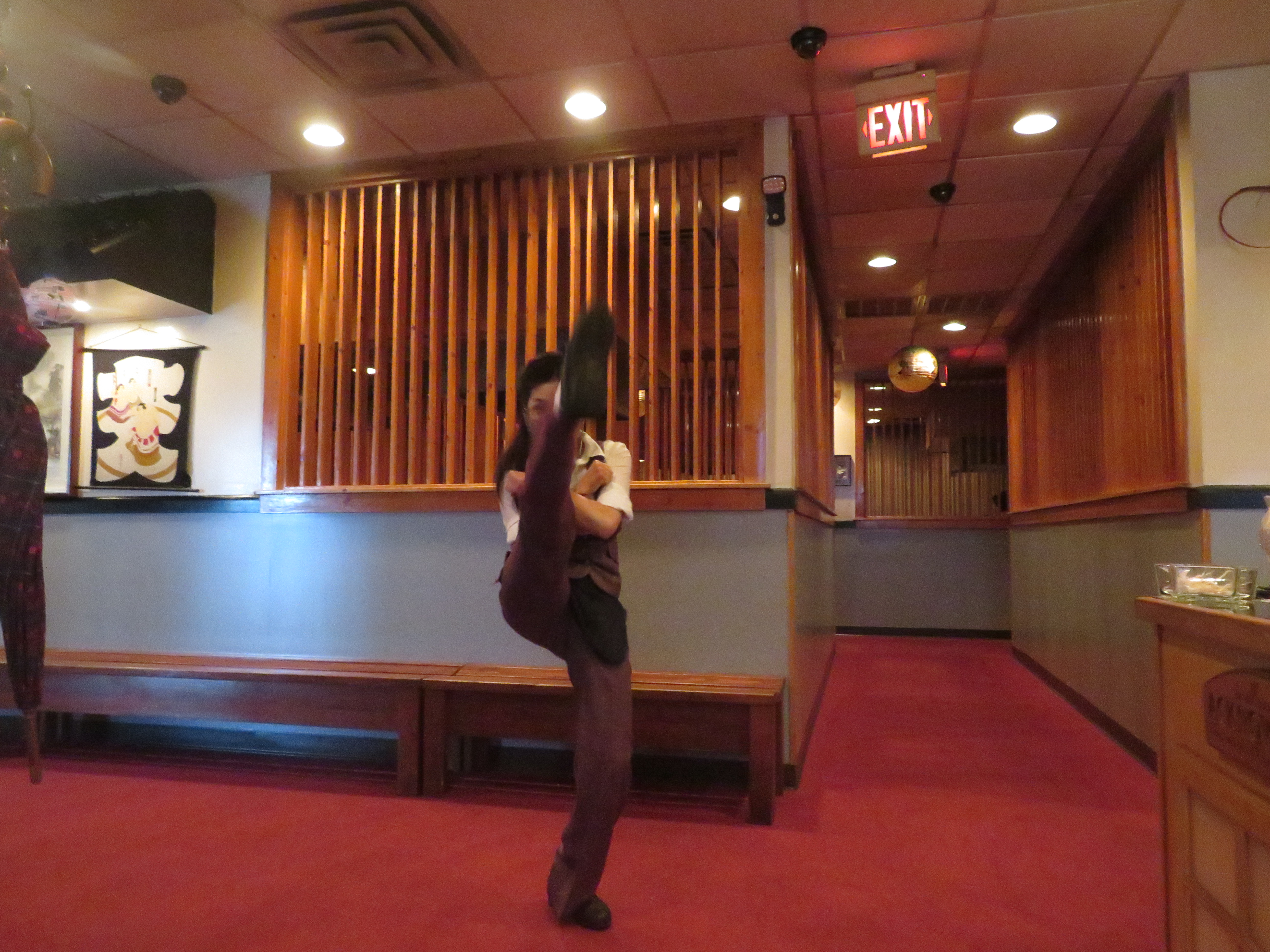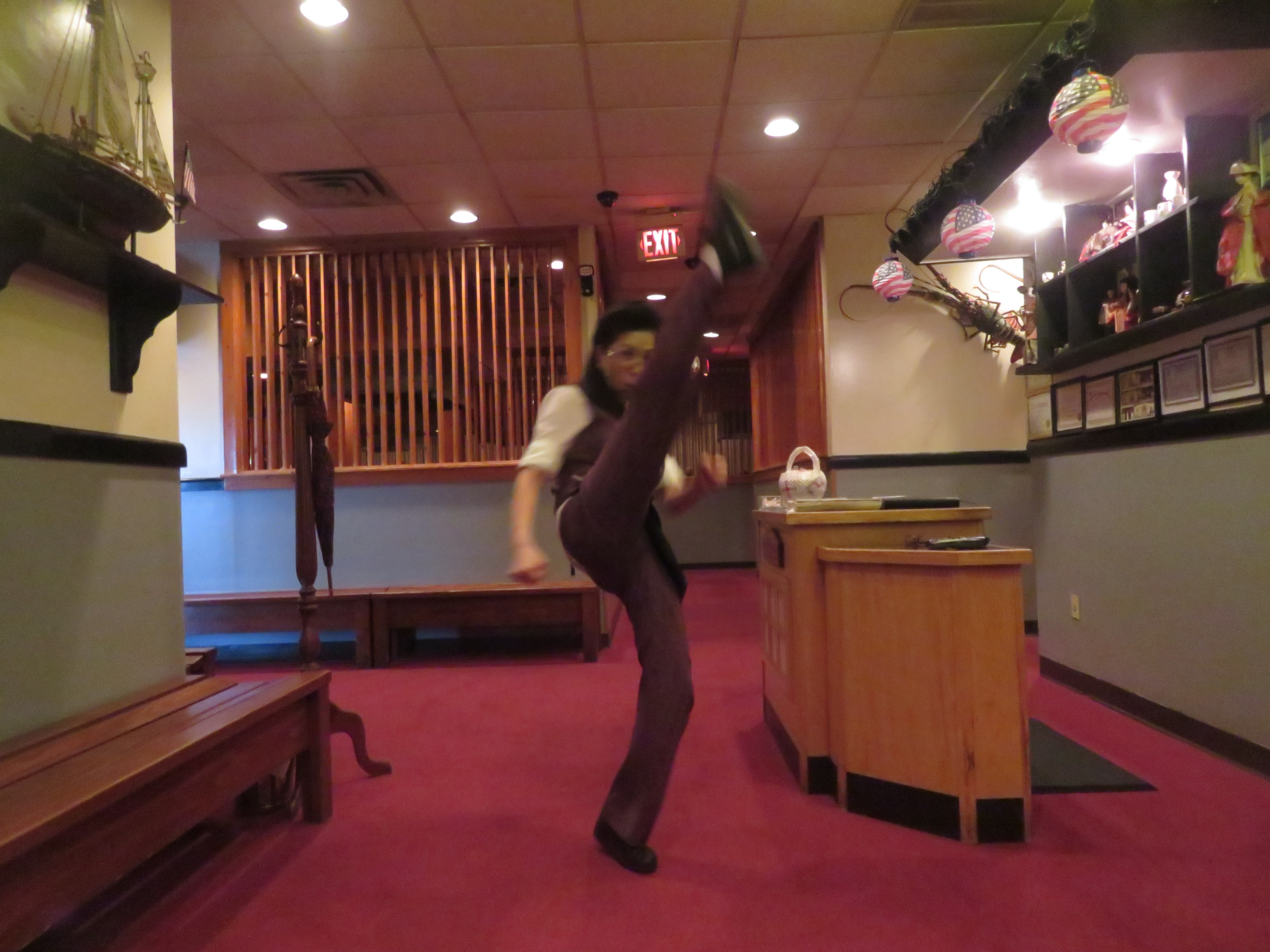 옥순씨는 앞차기 후리치기 나는 돌려차기를 가르키고