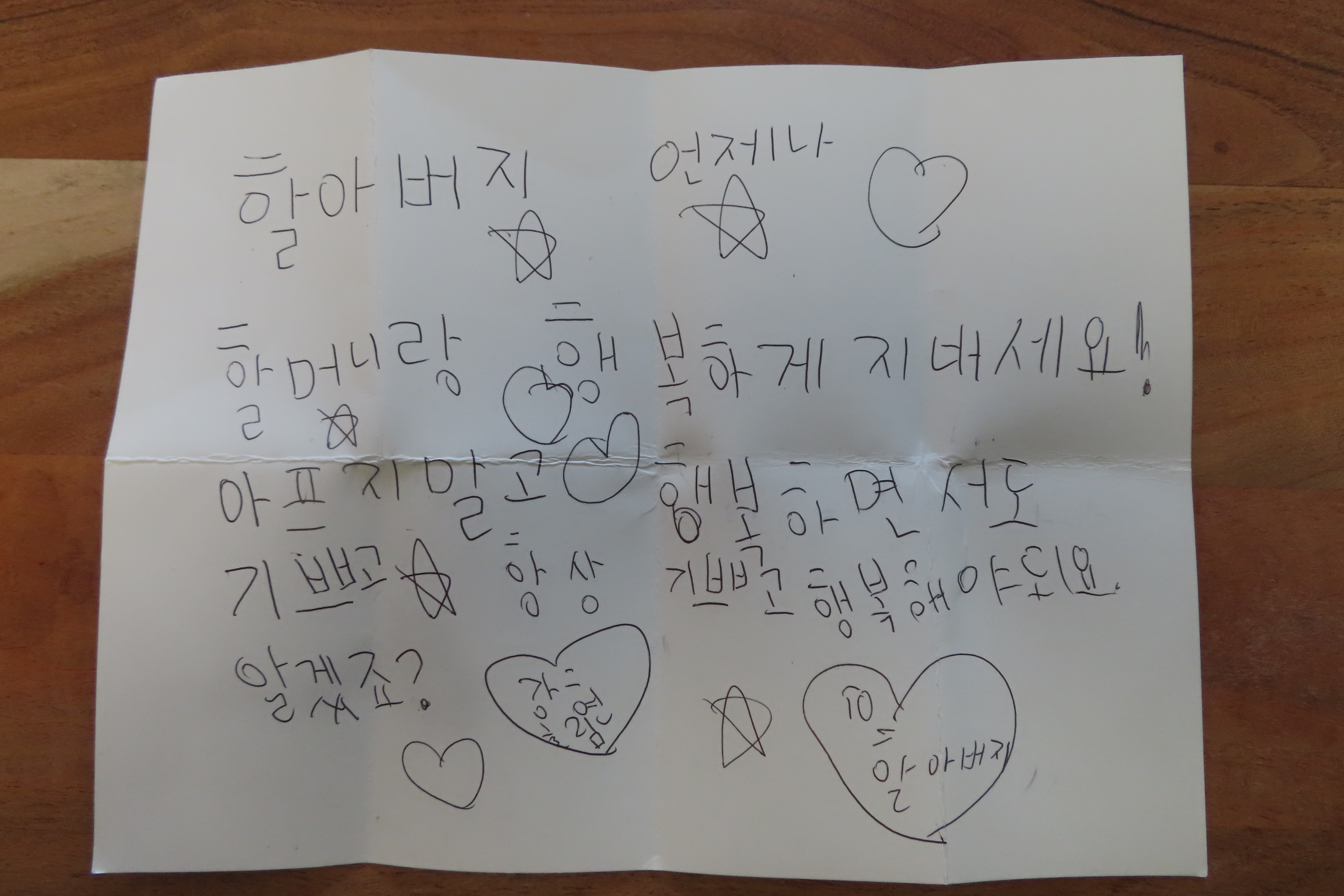 손주들은 떠나갔지만 그들이 남기고간 사랑의 멧세지가 할배를 날마다 기쁘게 만듭니다